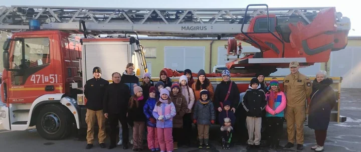 Przy samochodach i sprzęcie strażackim uczniowie ze Szkoły Podstawowej w Ossolinie oglądali umundurowanie i narzędzia ratownicze. W Komendzie Powiatowej Państwowej Straży Pożarnej w Sandomierzu strażacy przedstawili specyfikę służby i zasady bezpiecznego zachowania zimą. Wizyta miała charakter edukacyjny i wpisywała się w kampanię informacyjną.