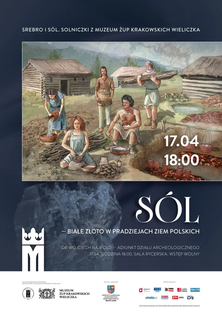 Wykład dr. Wojciecha Rajpolda ma otworzyć całą opowieść o wystawie „Srebro i sól. Solniczki z Muzeum Żup Krakowskich Wieliczka ” od najstarszej perspektywy – archeologicznej. Prelegent, adiunkt w Dziale Archeologicznym Muzeum Zamkowego w Sandomierzu, ma pokazać, od kiedy człowiek korzysta z soli, jak ją pozyskiwano i dlaczego przez długi czas była traktowana niemal jak cenny kruszec.