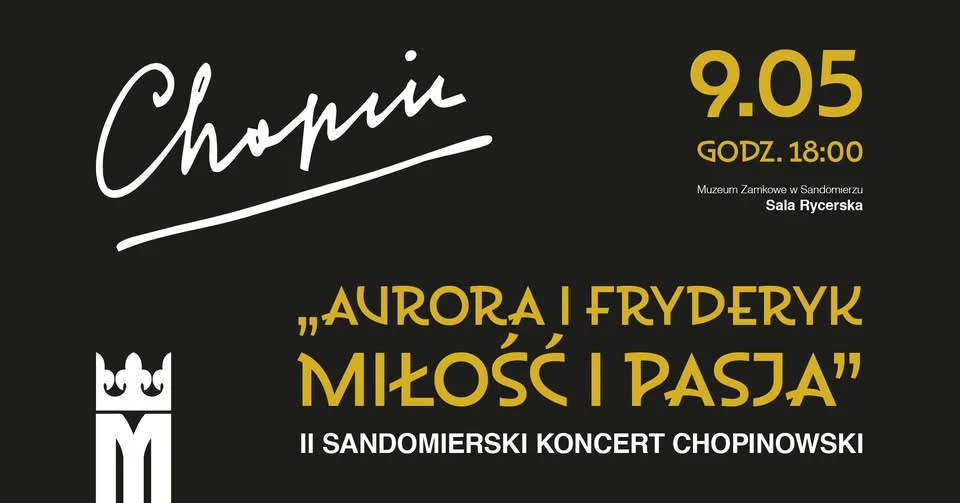 Sandomierski Zamek Królewski znów wypełni się muzyką Chopina i atmosferą wielkiego wieczoru To będzie druga odsłona Sandomierskiego Koncertu Chopinowskiego, a program zapowiada się naprawdę wyjątkowo: fortepian, historia, emocje i opowieść o miłości Aurory i Fryderyka w pięknej scenerii Sali Rycerskiej. To jeden z tych sandomierskich wieczorów, które warto zaznaczyć w kalendarzu.